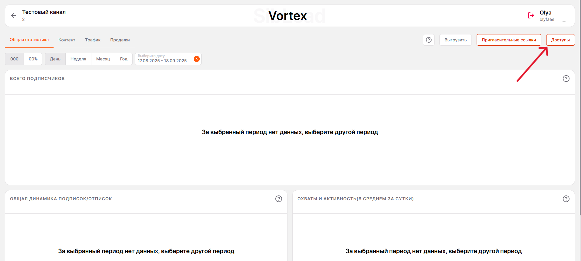 1. Откройте веб-версию Vortex и перейдите в ваш канал.