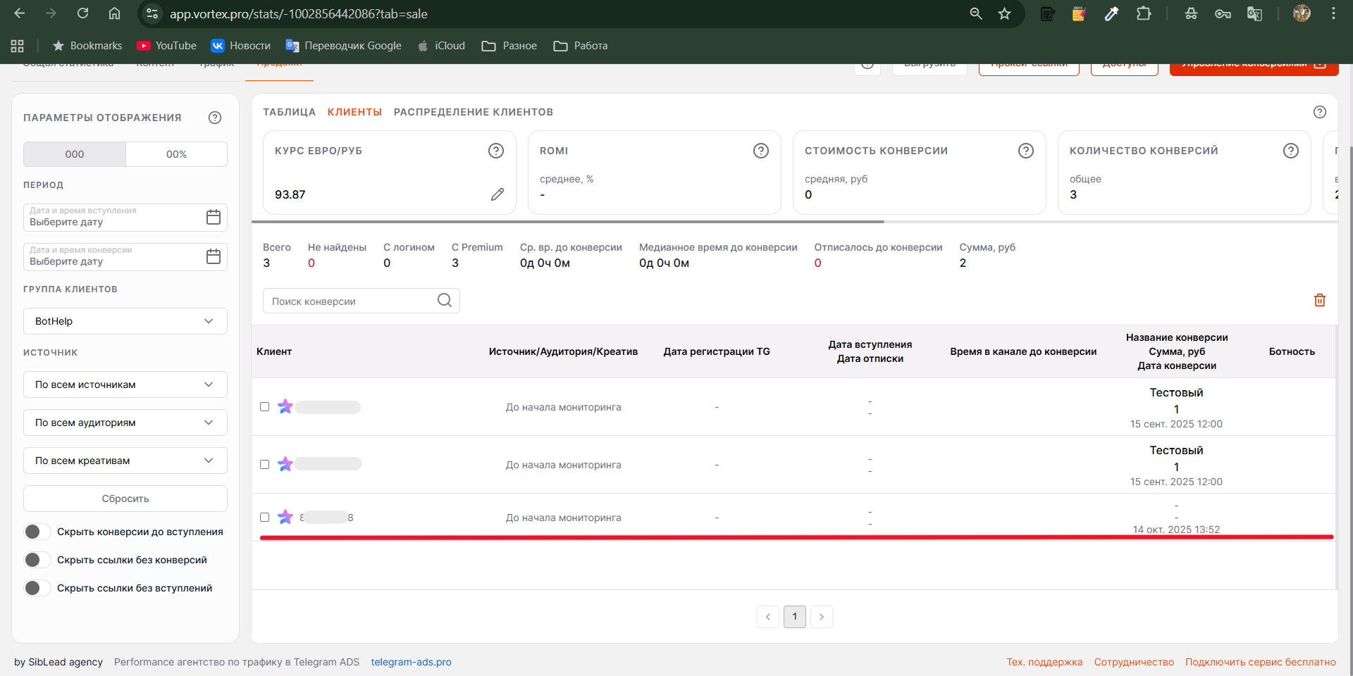 Интеграция с BotHelp даёт возможность отправлять информацию о конверсиях в Vortex через API. Это особенно полезно, когда пользователь совершает целевое действие внутри бота – например, оставляет заявку, проходит регистрацию или оплачивает продукт. Такие данные автоматически попадают в Vortex, обеспечивая точный учёт эффективности источников трафика и полную прозрачность воронки.