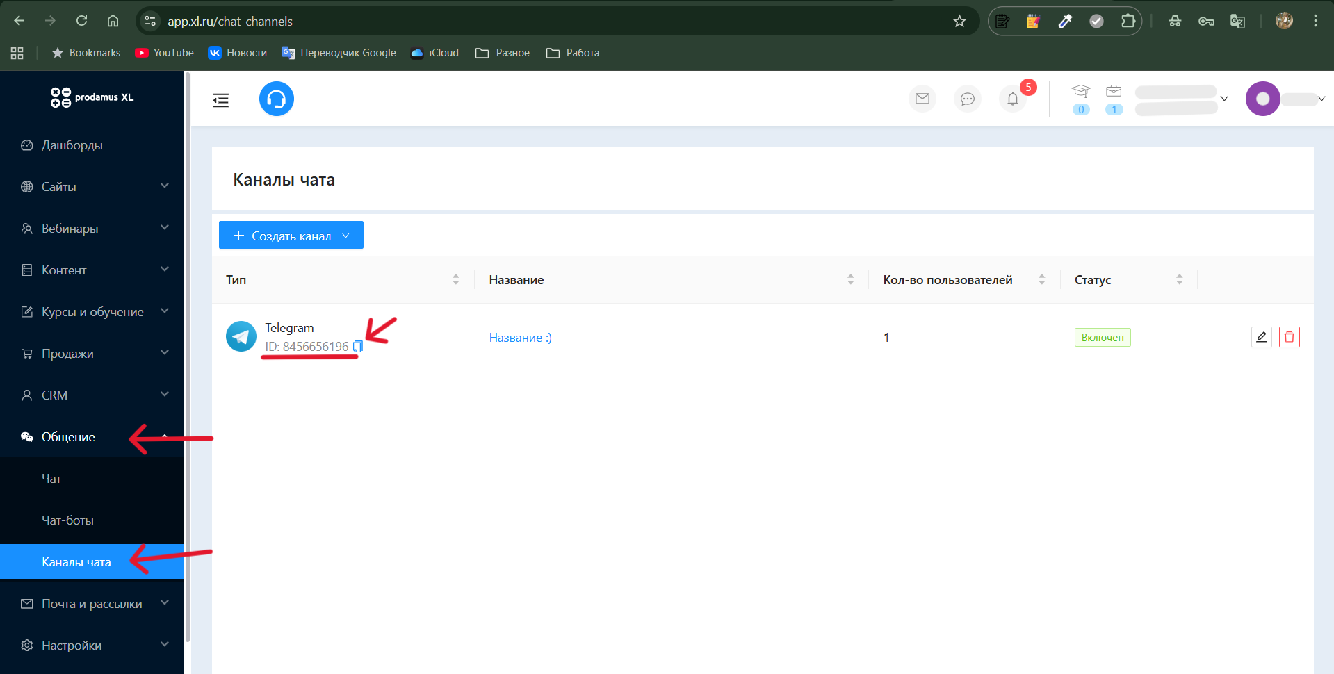 1. Перейдите в «Общение» ➡️ «Каналы чата»