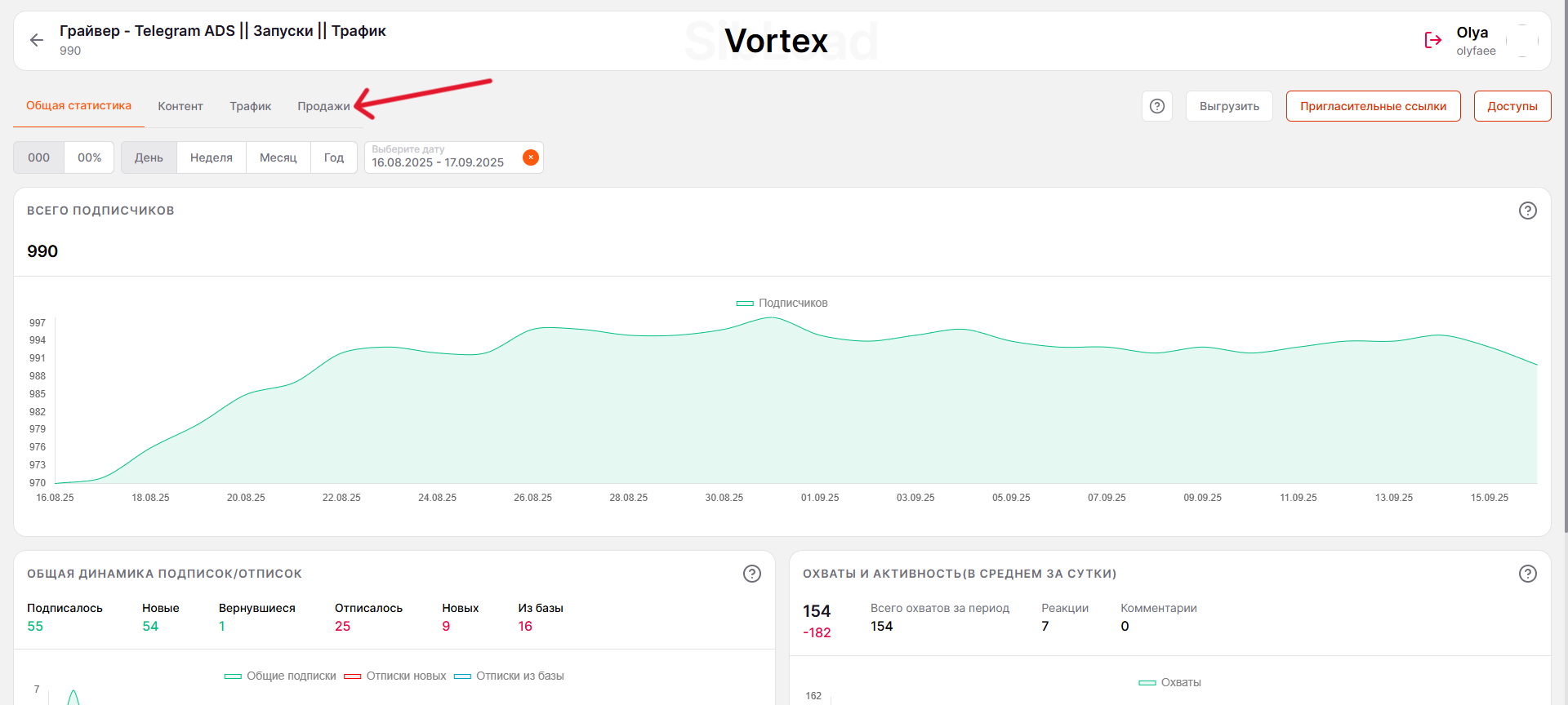 5. Перейдите во вкладку «Продажи».