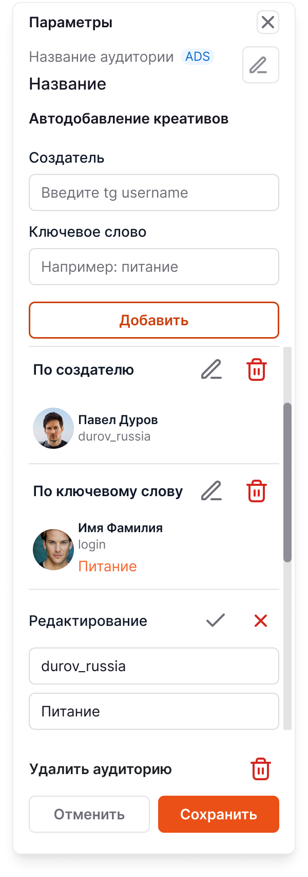 3. Если в одной из аудиторий указан этот создатель – креатив автоматически перемещается туда
